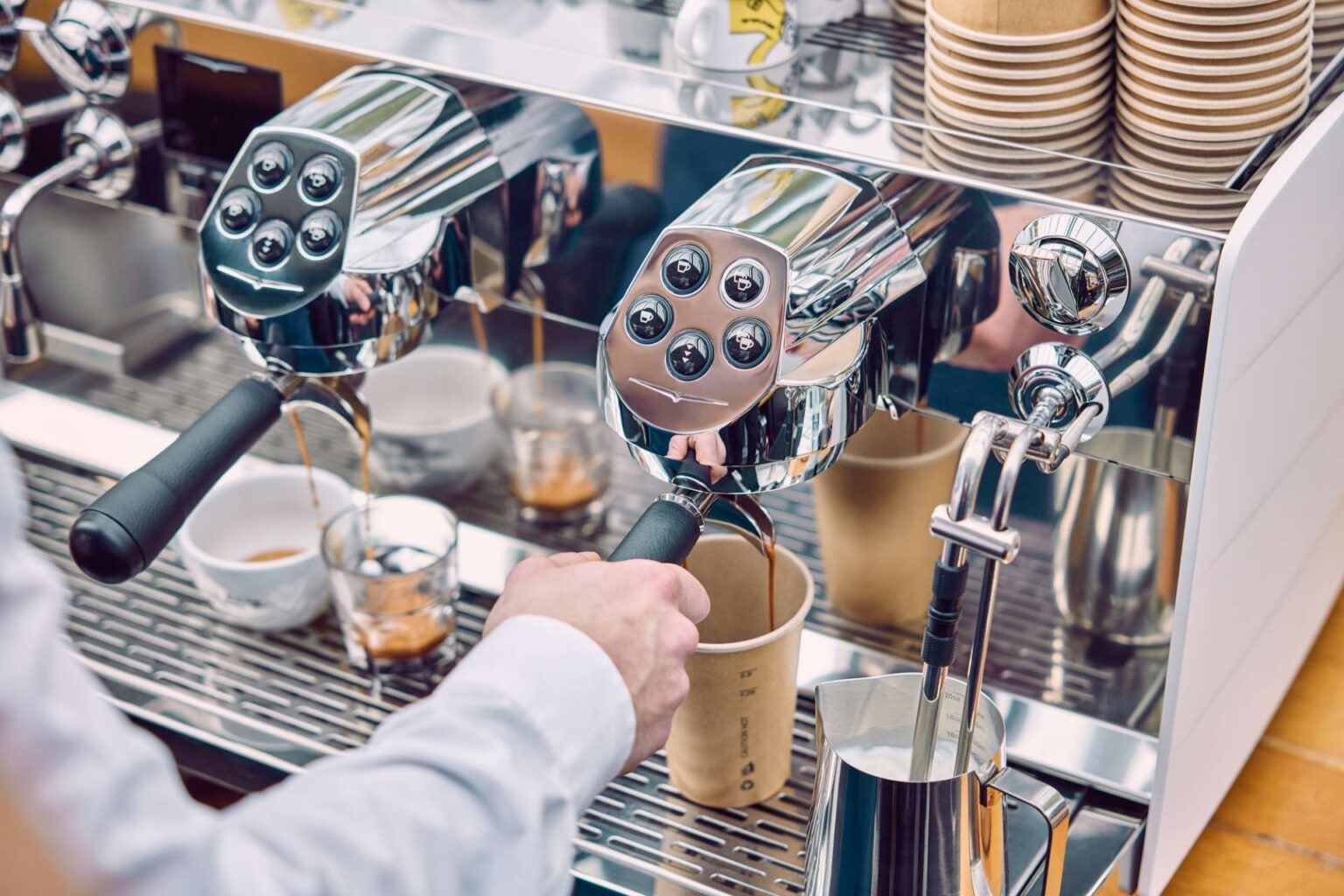 Regular cleaning and maintenance are vital to keeping commercial coffee machines operating at their best. Following manufacturer guidelines, develop a comprehensive cleaning and maintenance schedule that includes daily, weekly, and monthly tasks. Depending on whether you have an automatic or traditional coffee machine, this can involve descaling, backflushing or group-head cleaning. By providing suitable employee training and adhering to a routine, you can prevent the buildup of coffee and milk residues, ensure consistent flavour, extend the lifespan of your equipment, and avoid prolonged shut-downs.