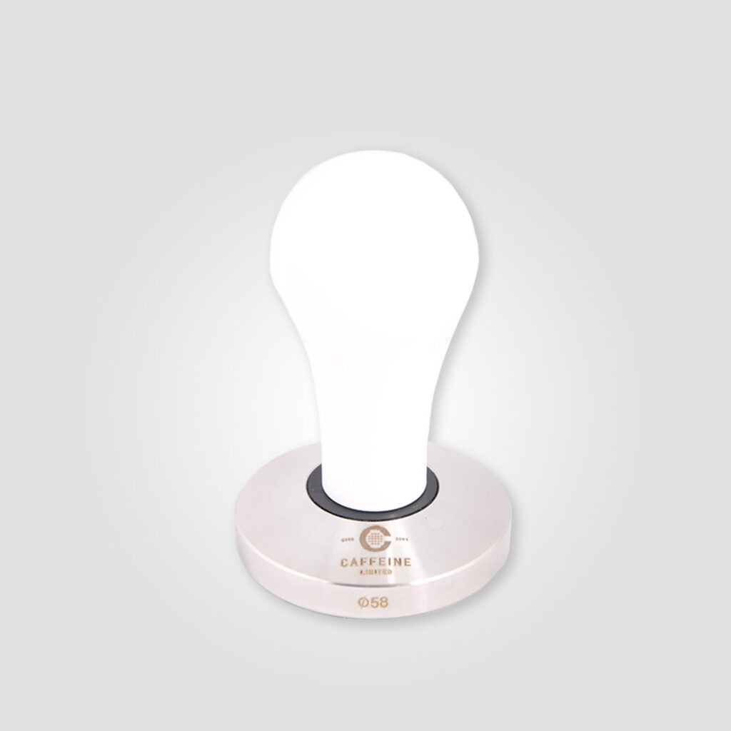 Coffee tamper with a flat base 58mm wide, for a perfectly flat coffee bed which aids for the perfect coffee extraction
