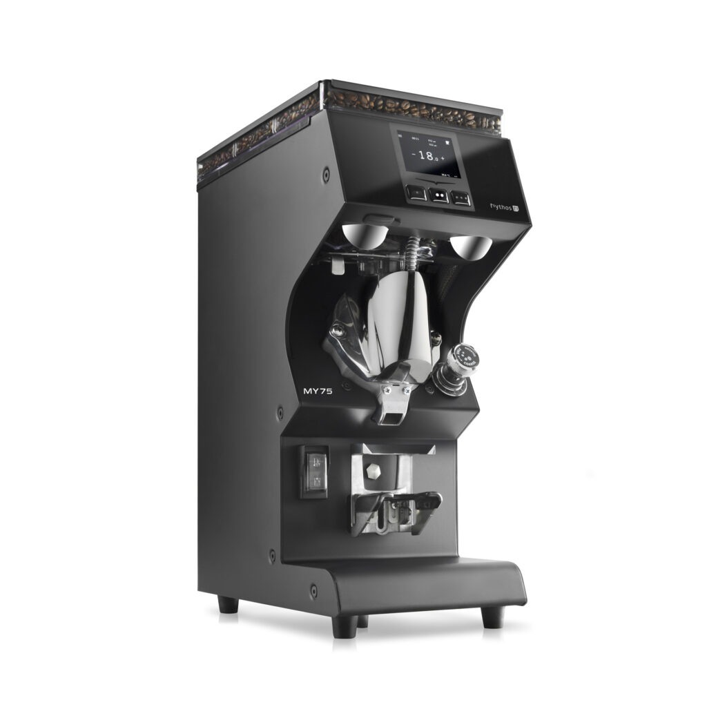 The new touchscreen display is even more user-friendly. Baristas can easily change settings, read all the information needed and maintain total control of the grinder. Mythos further improves its clump crusher and outlet spout, by simplifying and reinforcing it to guarantee perfect flow of ground coffee in the filter. The new filterholder hook design sends ground coffee into the filter thus minimising waste.